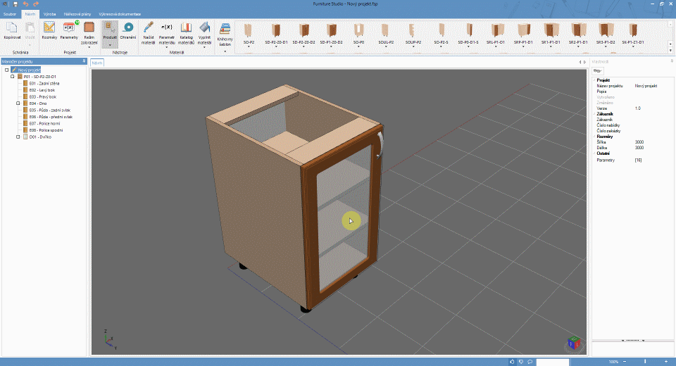 Vyvíjíme 3D návrhový program pro truhláře. Program vytváří vizualizaci návrhu, výrobní dokumentaci a nářezové plány.